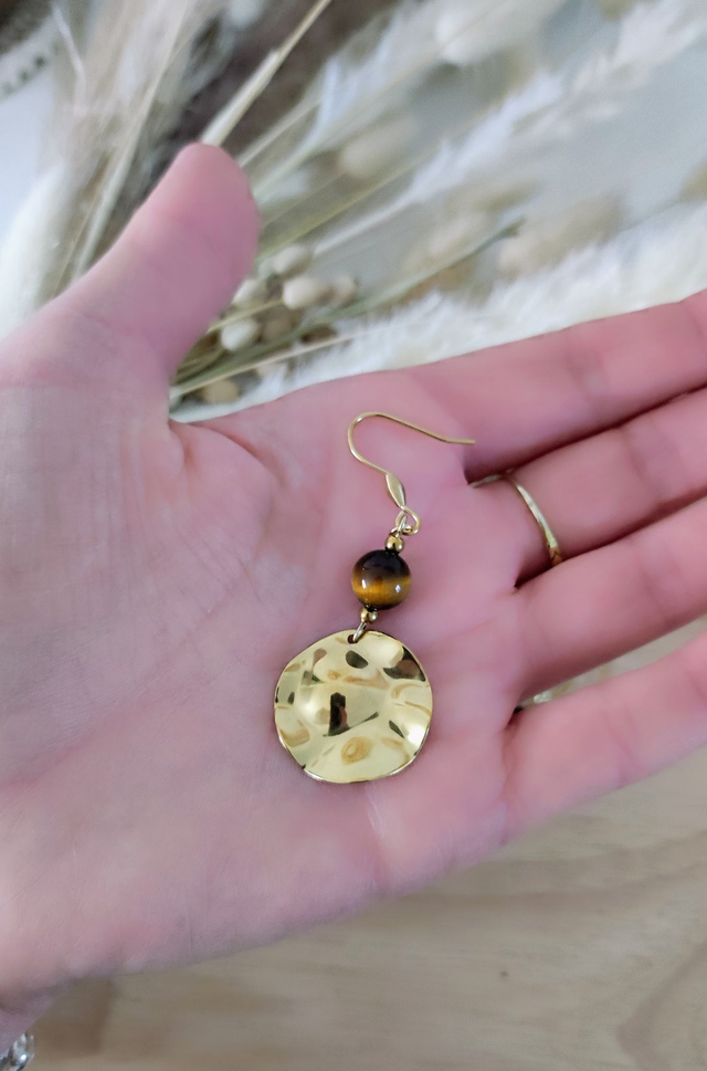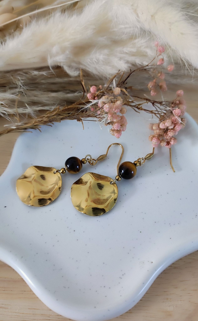 ✨ Boucles d'oreilles fantaisie en acier inoxydable et Oeil de tigre.