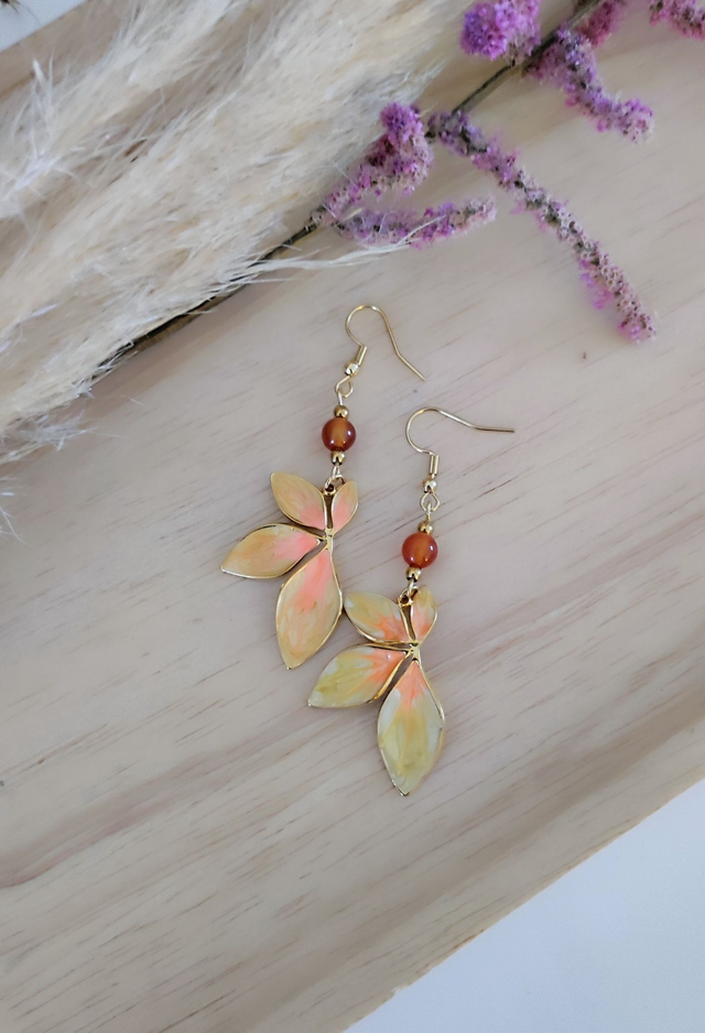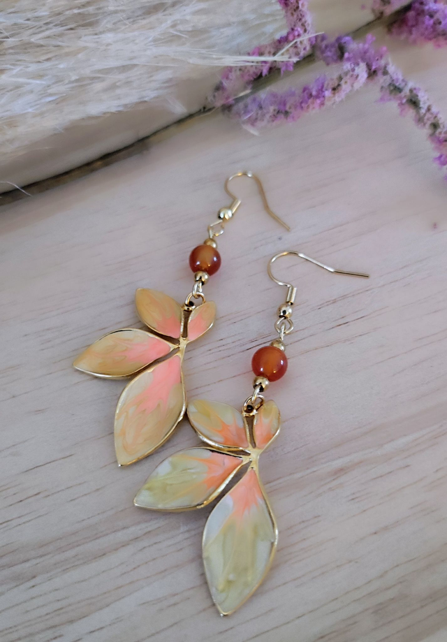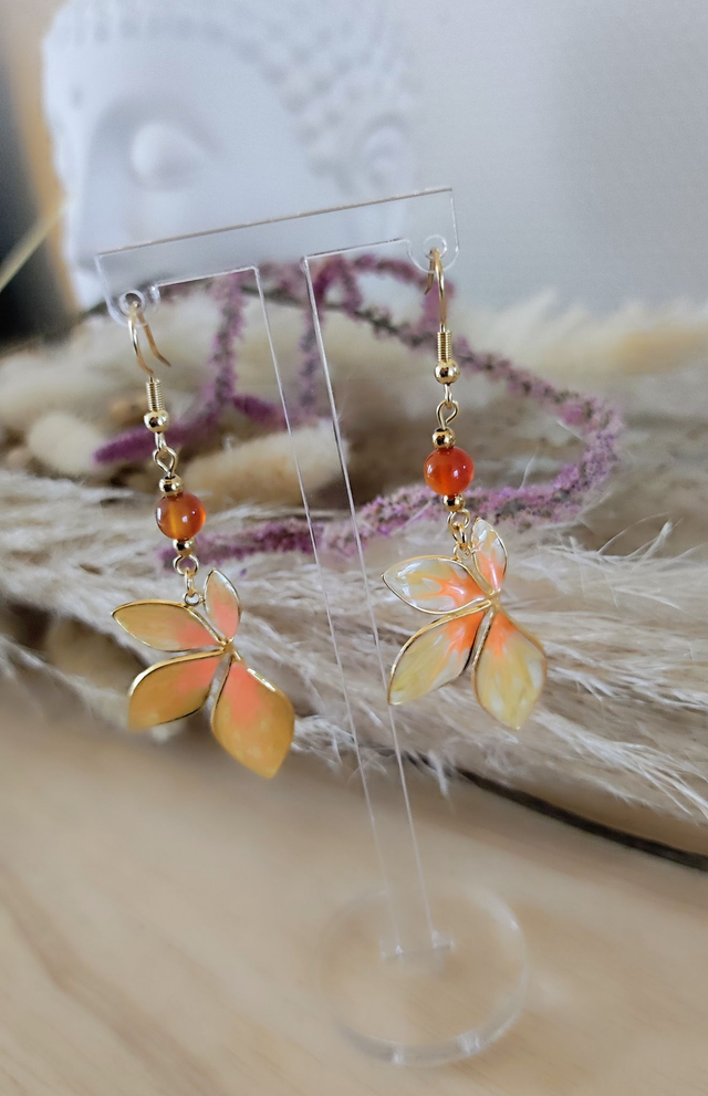 ✨ Boucles d'oreilles en acier inoxydable, Cornaline et Fleur émail.