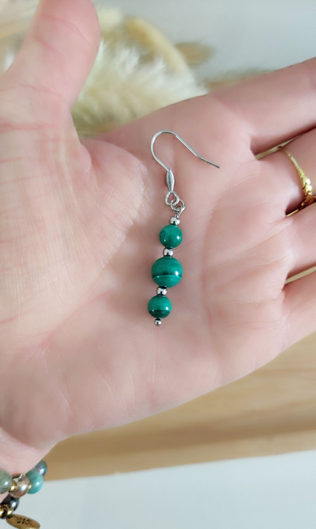✨ Boucles d'oreilles en acier inoxydable et Malachite.