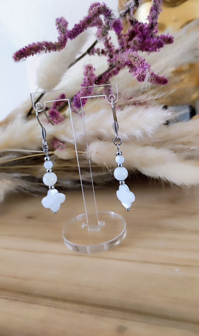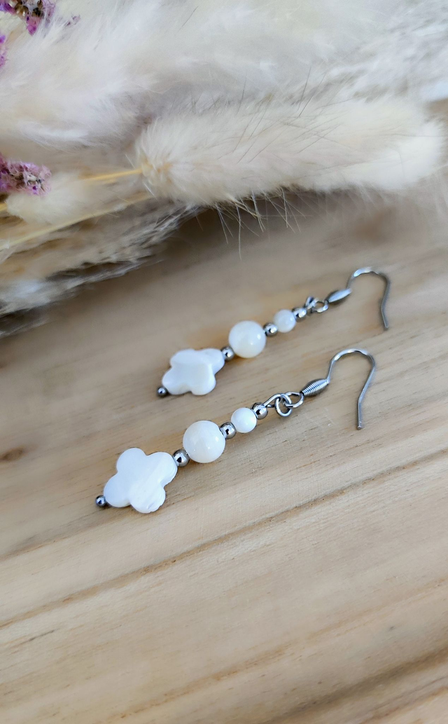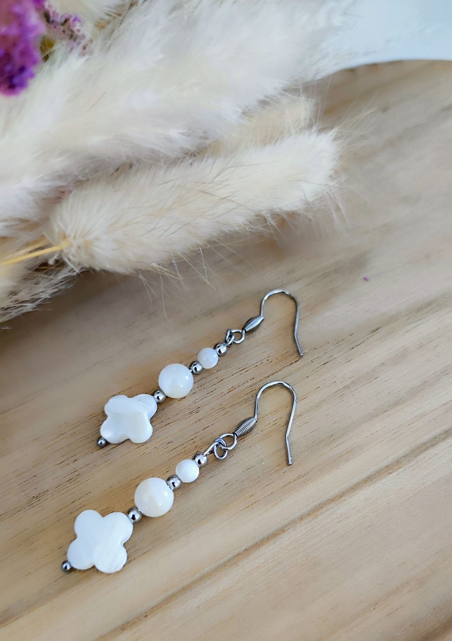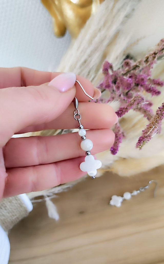 ✨ Boucles d'oreilles Trèfle en Nacre et acier inoxydable.