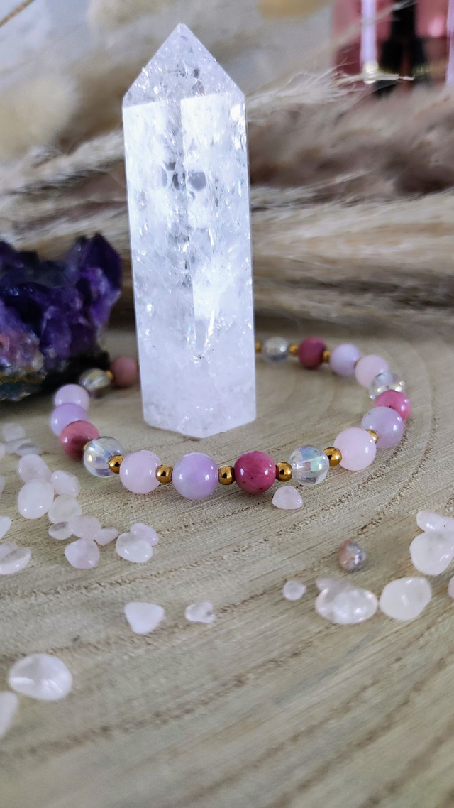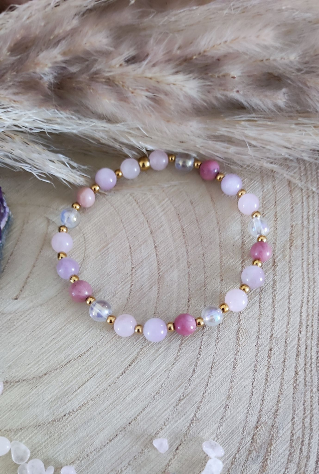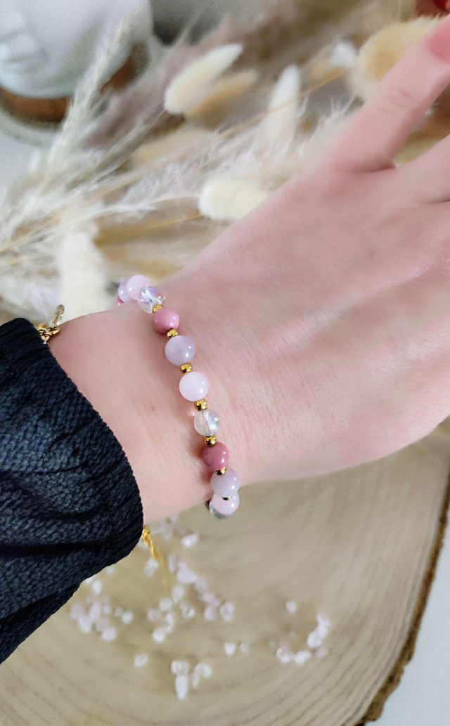 ✨ Bracelet Chakra du coeur en Rhodonite, Quartz rose et Kunzite.