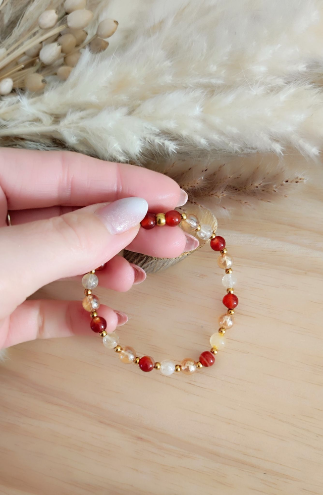 Bracelet "Confiance en soi" Cornaline, Citrine et Quartz Aura
