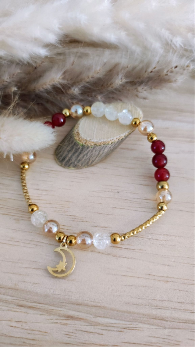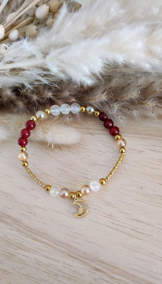✨ Bracelet "Confiance en soi et Énergie positive" en Cornaline, Citrine et Quartz Aura.