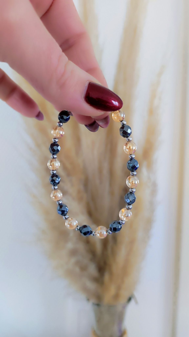 ✨ Bracelet femme en Hématite facetté et Aqua aura (Cristal de roche pulvérisé à l'or fin).