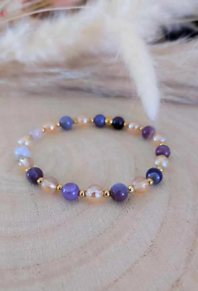 ✨ Bracelet Agate de Botswana et Quartz Aura (Cristal de roche pulvérisé à l'or).