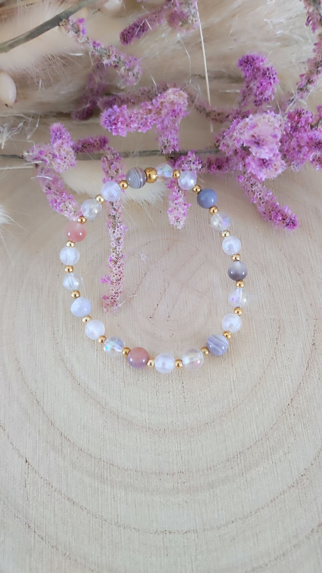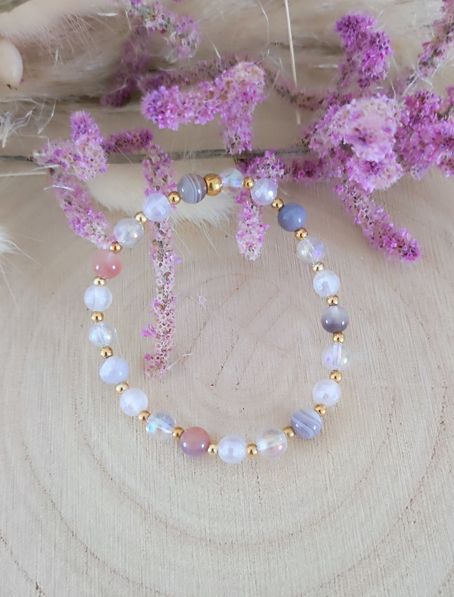 ✨ Bracelet Agate de Botswana rose et Agate blanche facettée.
