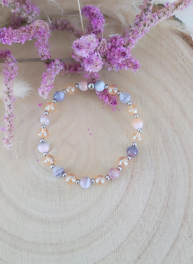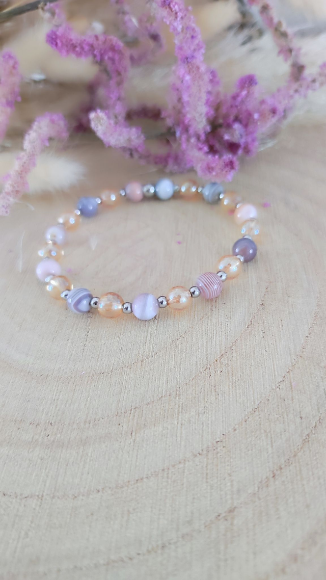 Bracelet "Émotions négatives" Agate de Botswana rose et Quartz Aura n°7