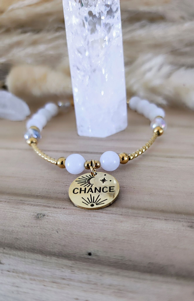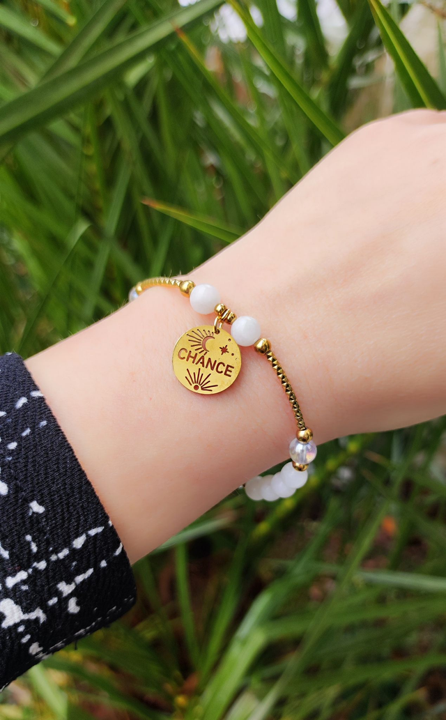 Les espaceurs et la breloque "Chance" sont en acier inoxydable pour une meilleure qualité et tenue dans le temps.