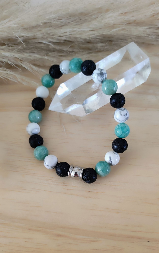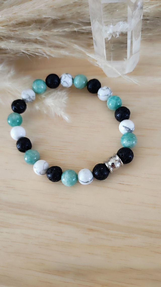 Bracelet "Lâcher prise" Amazonite, Howlite et Pierre de lave