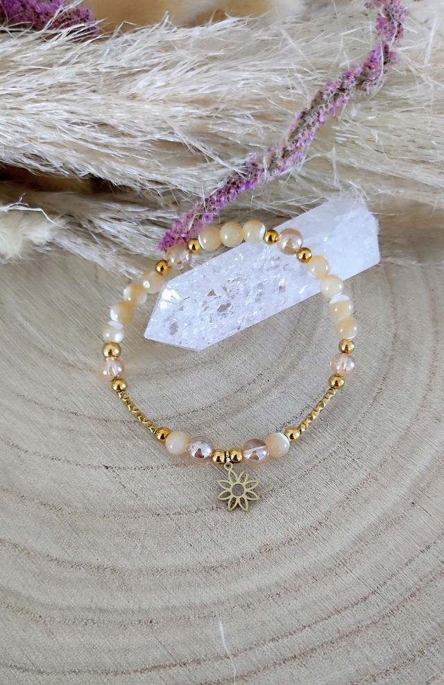 ✨ Bracelet femme en Perle Nacre et Quartz Aura.