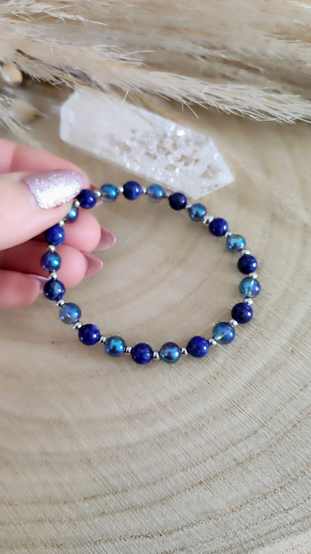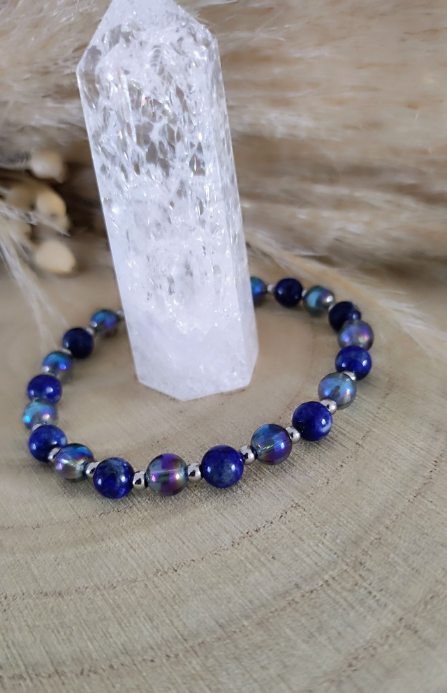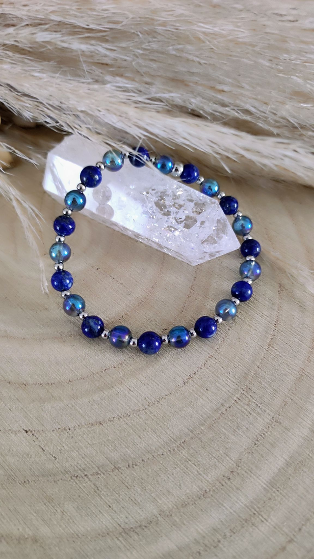 ✨ Bracelet femme en Lapis Lazuli et Quartz Aura bleu.