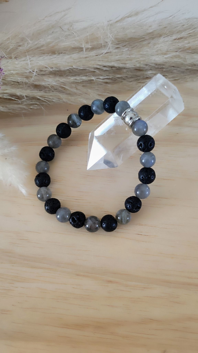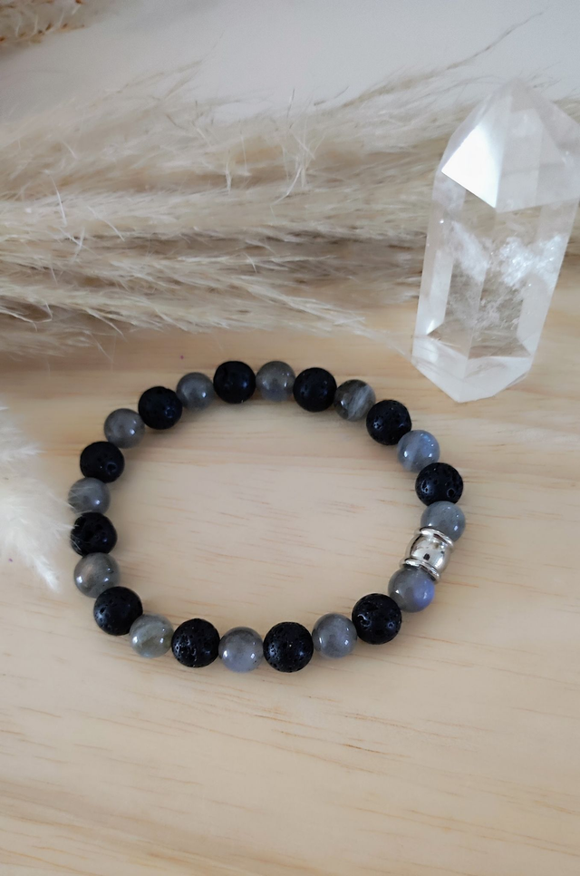 Bracelet "Protection et Stress" Labradorite et Pierre de lave