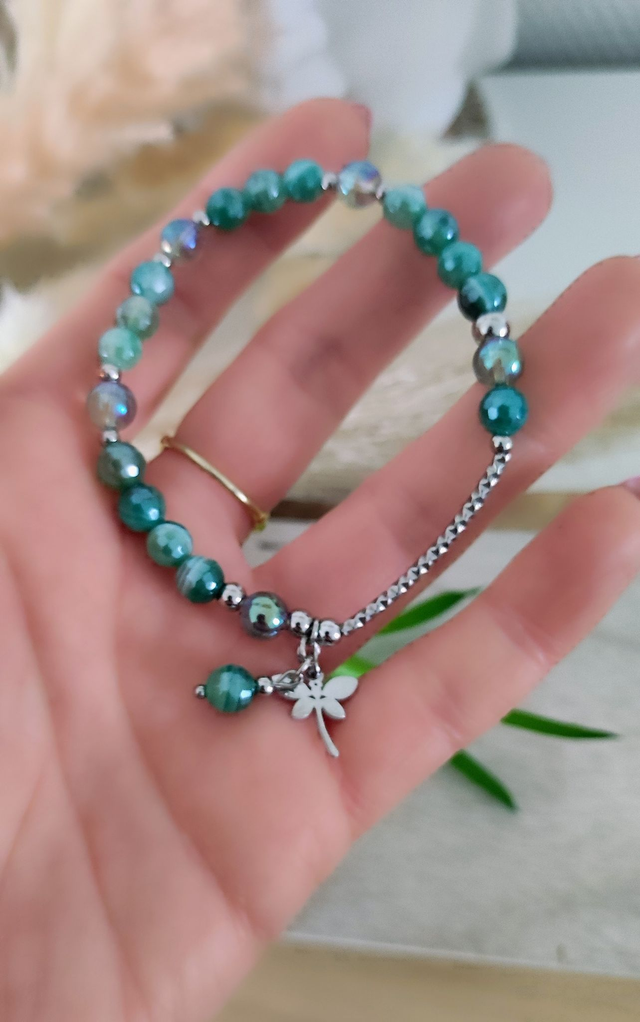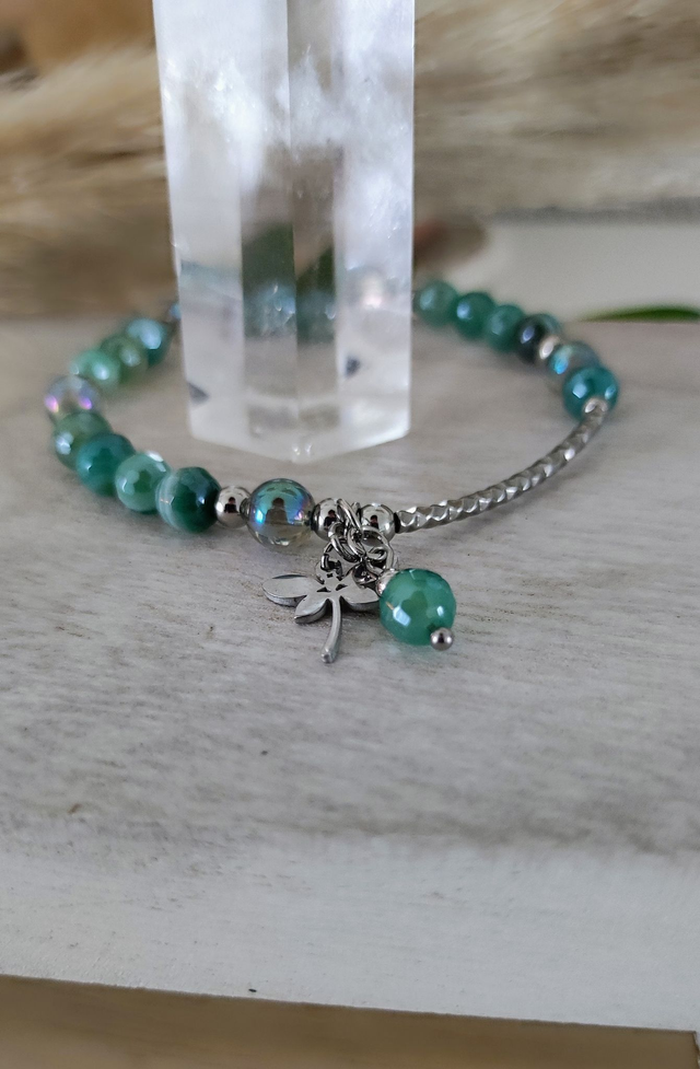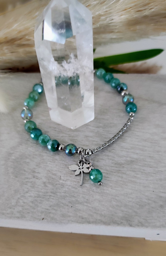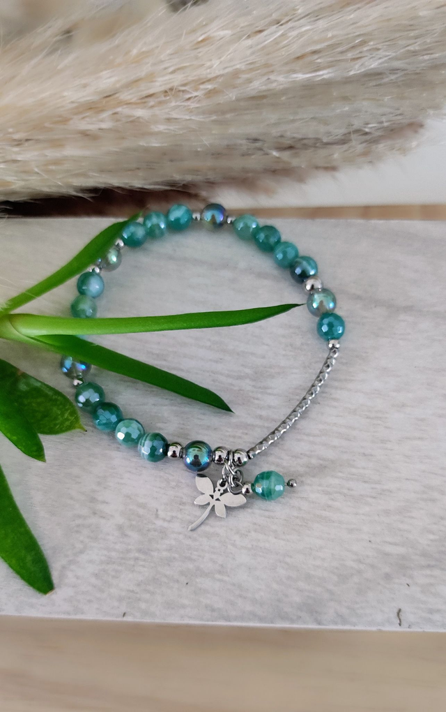 ✨ Bracelet en Agate verte facettée.