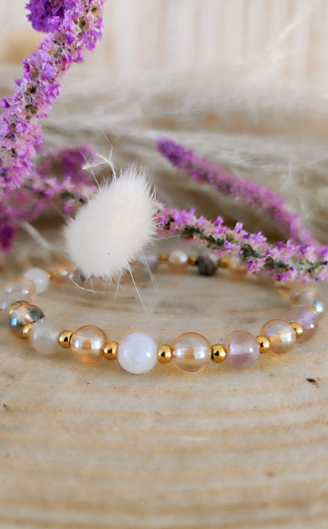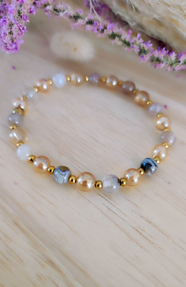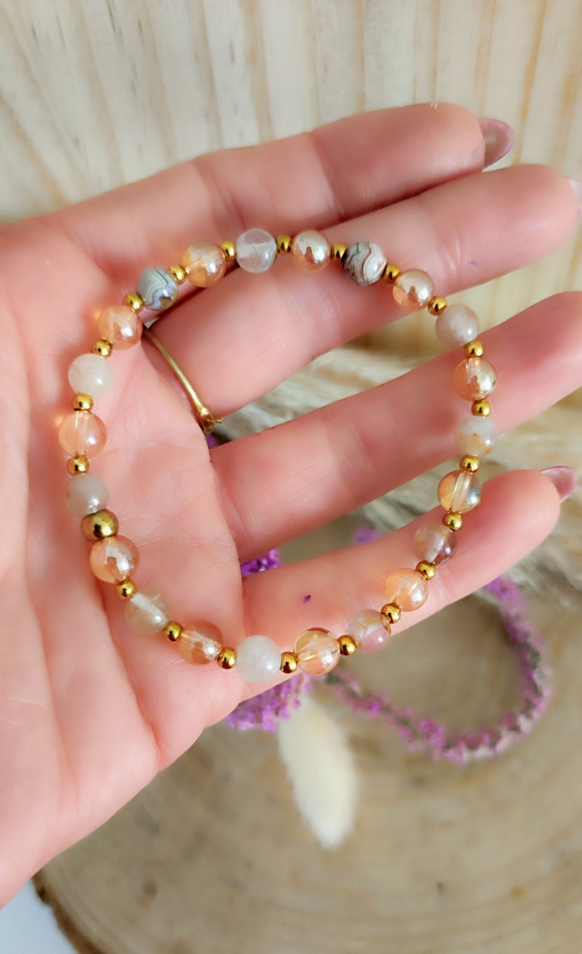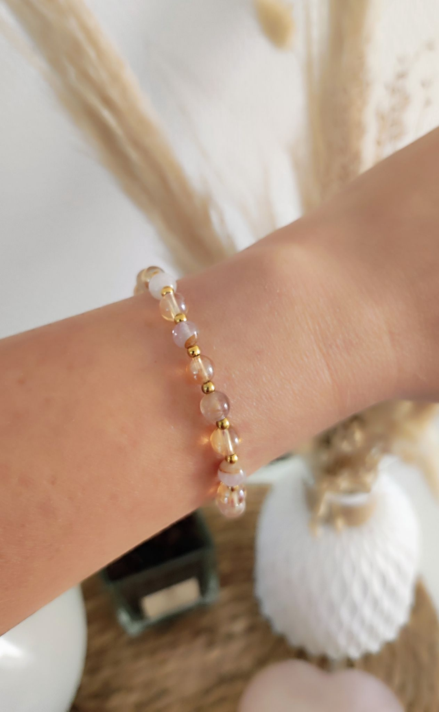 ✨ Bracelet en Agate avec inclusion Améthyste et Cristal de roche aqua aura.