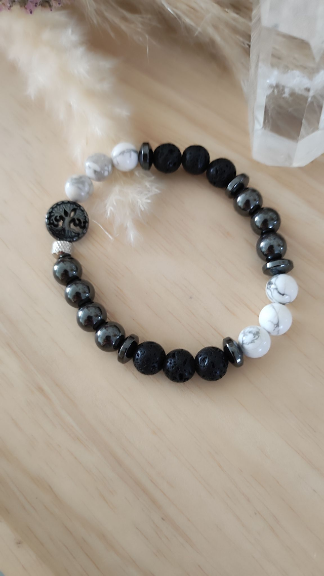 ✨ Bracelet "Sérénité" Pierre de lave, Howlite et Hématite.