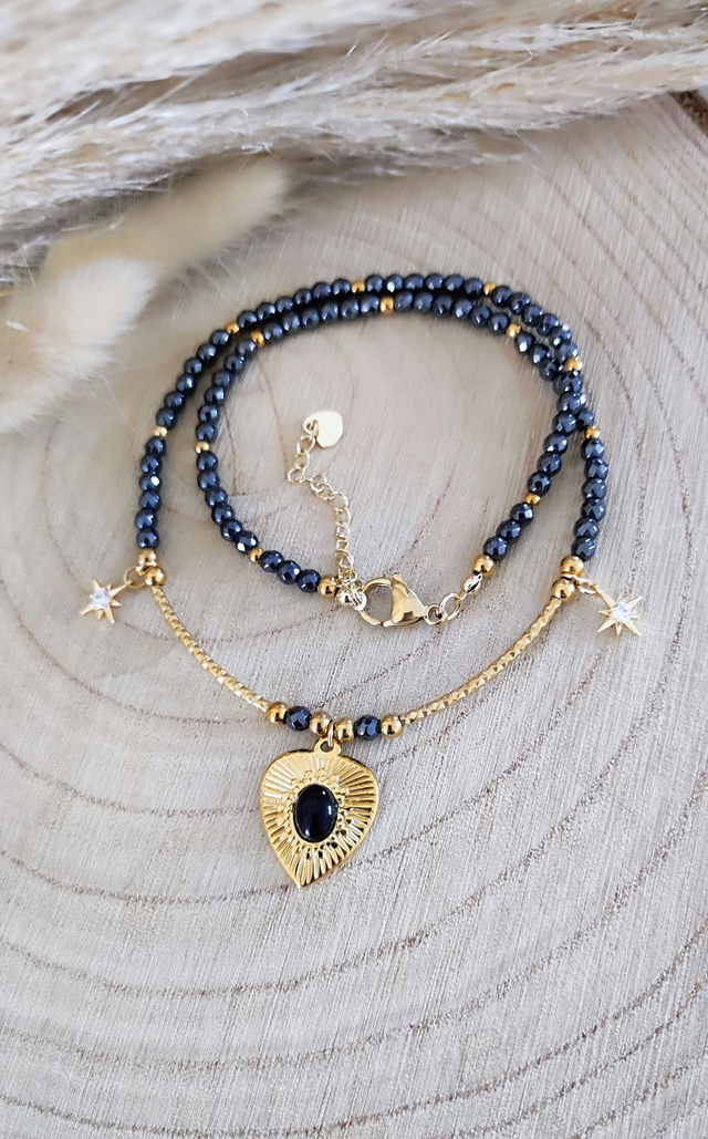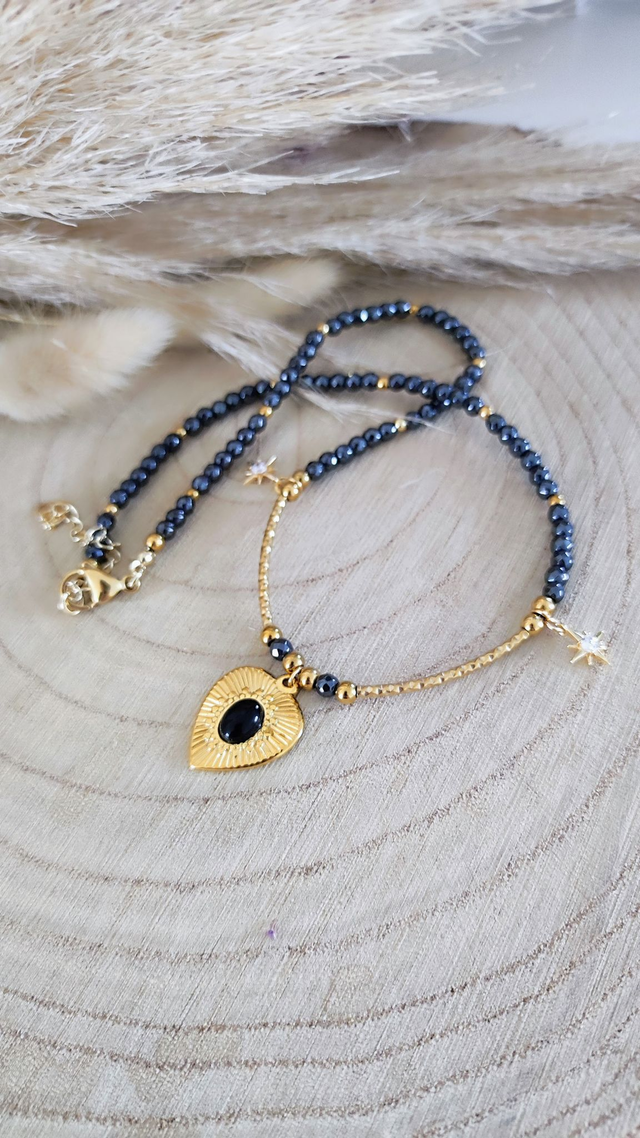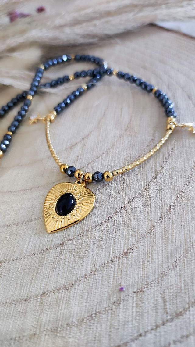 ✨ Collier femme "Confiance en soi" en Hématite facettée.