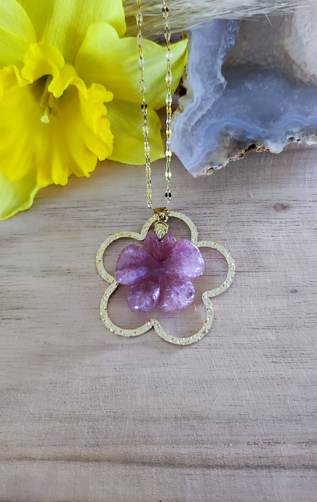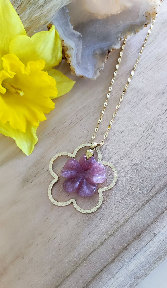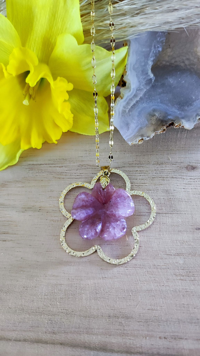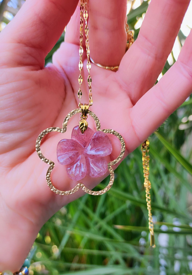 ✨ Collier "Flower" en Quartz fraise.