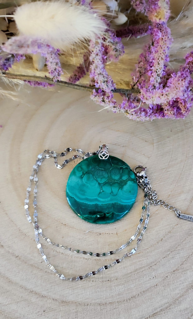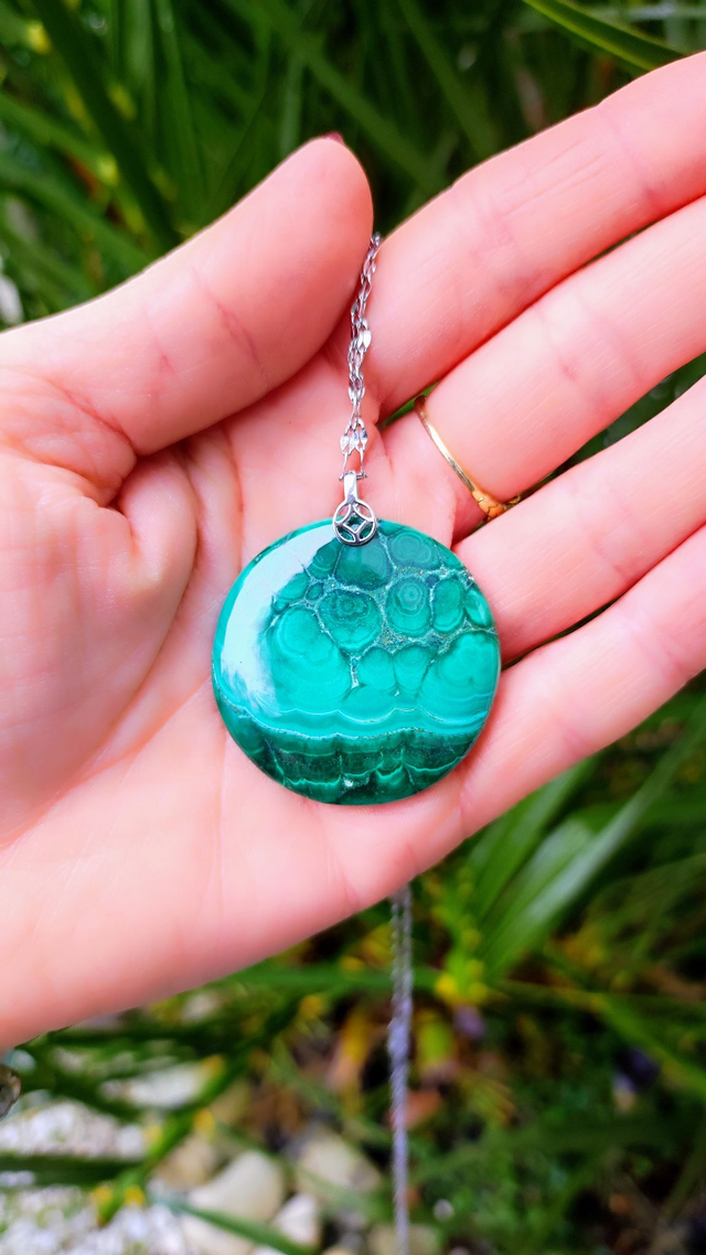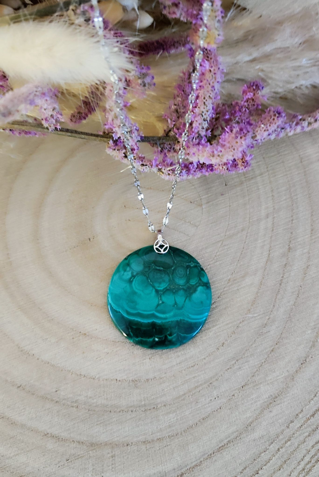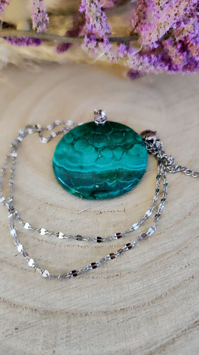 ✨ Pendentif rond en Malachite naturelle (Congo).