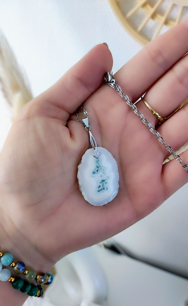 La bélière est en argent 925 et la chaîne est en acier inoxydable pour une meilleure qualité et tenue dans le temps.